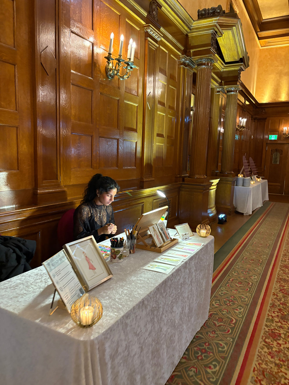 - As I complete portraits, they will placed in clear cellophane sleeves & displayed for guests to take home in front of me on the table. It is essential that I get photos in the beginning of my allotted time in order to complete the paintings. NO photos beyond my halfway point!